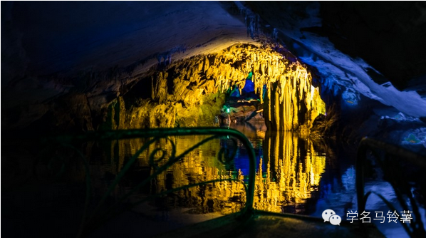 乘船暗度地下河的感觉最为奇特,河水清浅,最深处不过三米。与在海上乘船不同,在洞里划船经常依靠石壁借力。往水下看可见密密麻麻的泉眼,河水清冽,但不算甘甜。但凡有灯光,水里都可清晰的显现出奇景的倒影。时时都得小心头上的石头,所以我们都很恭敬。”