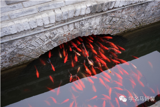 路上应是铺着青砖,随处可见的鲜花已不能算是点缀。步行街开始就有一池小鱼游曵于假山喷泉之间,一渠清水引下来,鱼儿也潜游其中。不到半米宽的水渠两旁坐满了人,享受着鱼儿的嬉戏,树荫带来的清凉,和带给内心的清静悠闲。行走中,原本的渠突兀地断掉,两座小池继承着水汽,也承载着小孩的欢乐。孩子们用力转动着驱动着小艇的杆,最逗的是见一个稚子因力量不够,只能双手费力地推动一边的杆,一会儿又推动另一边杆。或许他在困惑为什么艇不像其他人那样前行,不管怎样,他始终在原地打转。