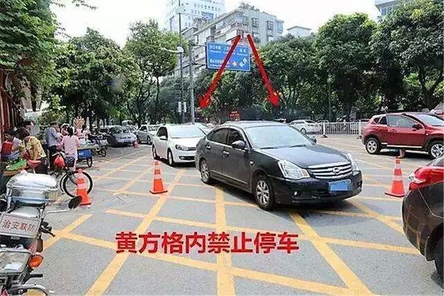 1、黄方格区域和设置了禁停黄线的路段不能停