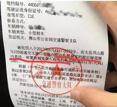 、放置妨碍驾驶人视线的物品”。按规定是要进行处罚,罚款50元。