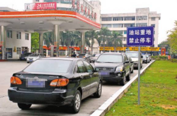 因为在出入口停车,容易造成加油车辆拥堵,甚至影响主干道的交通。