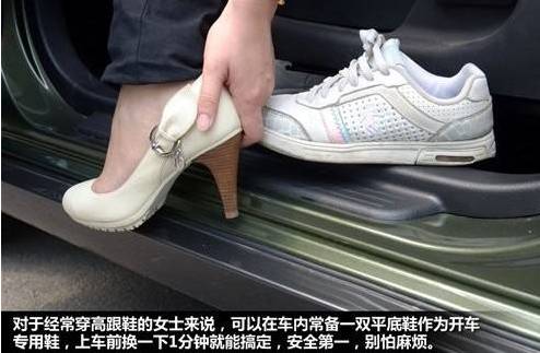 不适合开车穿的鞋 :高跟鞋、长筒皮靴、松糕鞋、洞洞鞋、雪地靴、还有光脚!