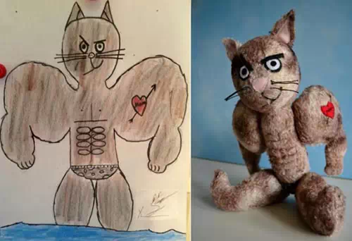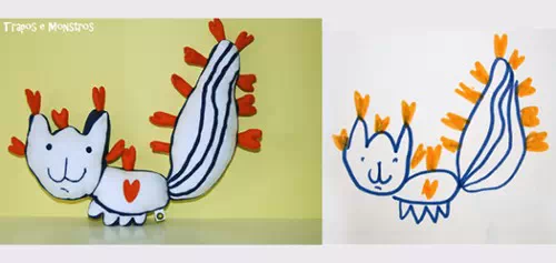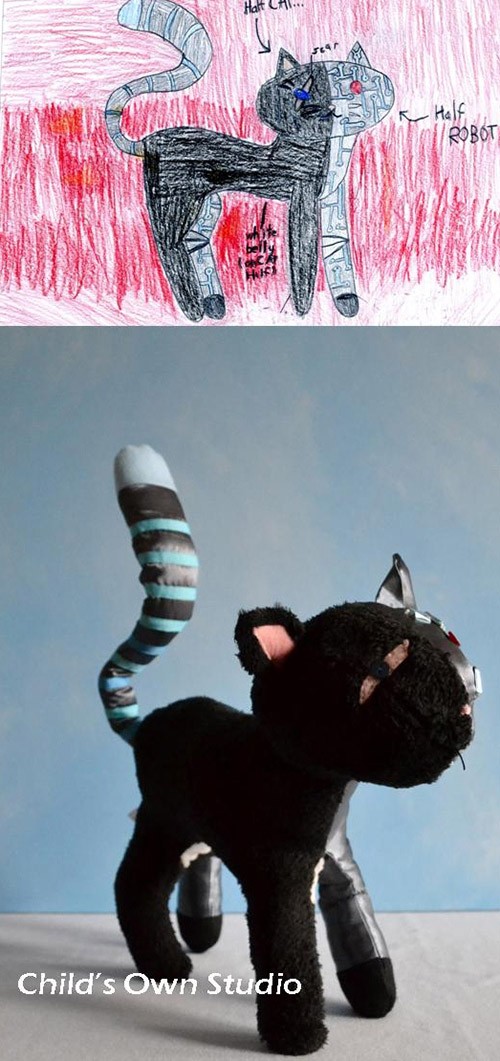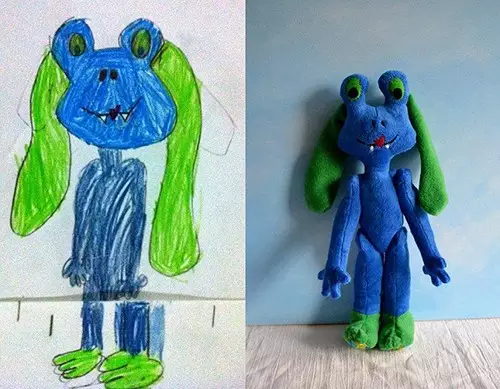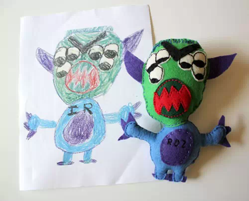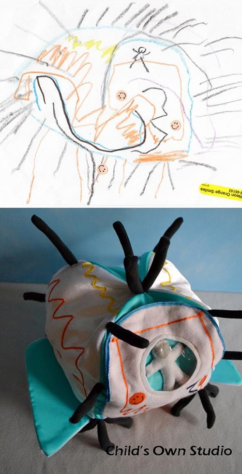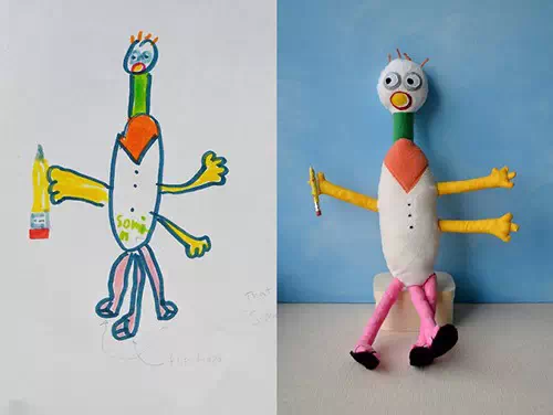这位来自温哥华的妈妈 Wendy Tsao 把儿子的随手涂鸦做成了可爱毛绒玩具。当这些玩具变成实物时,我们才发现孩童的世界是多么的纯洁美丽。这些全天下却独一无二的布娃娃,想必是最温馨可爱的玩具了。