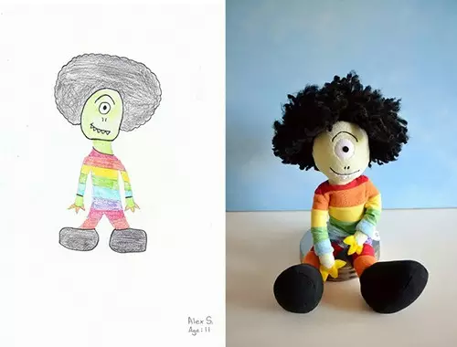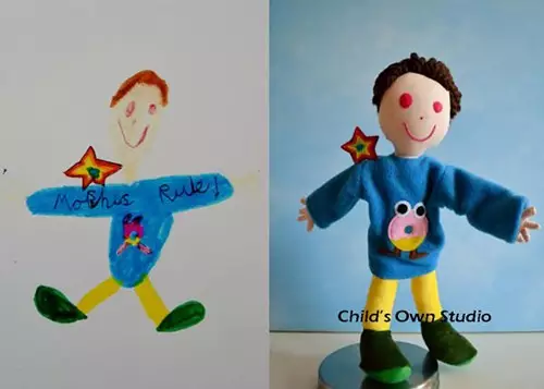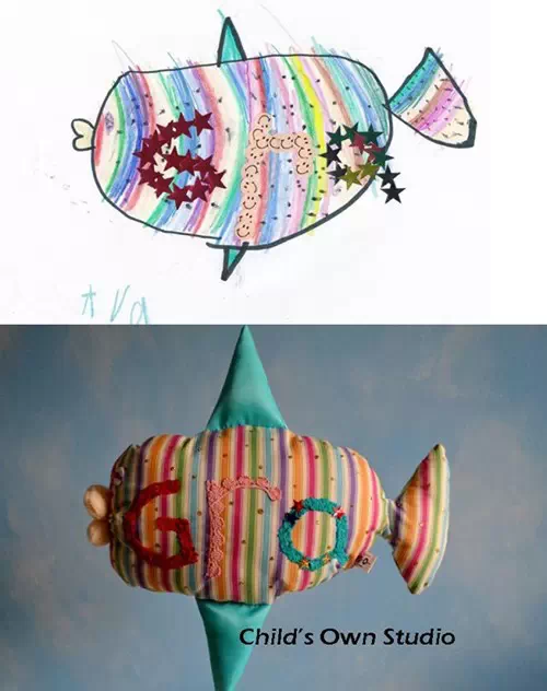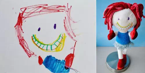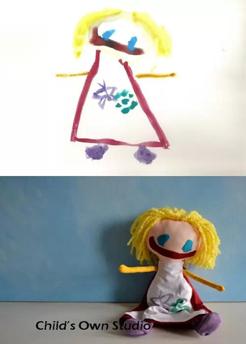 Wendy Tsao把儿子的随手涂鸦做成了可爱毛绒玩具。当这些玩具变成实物时,我们才发现孩童的世界是多么的纯洁美丽。这些全天下却独一无二的布娃娃,想必是最温馨可爱的玩具了。