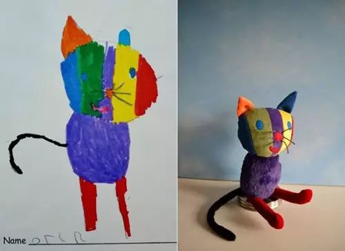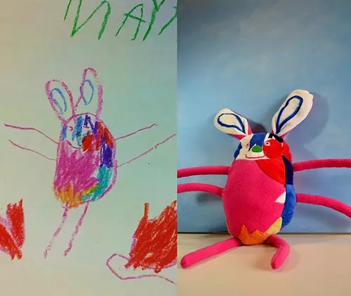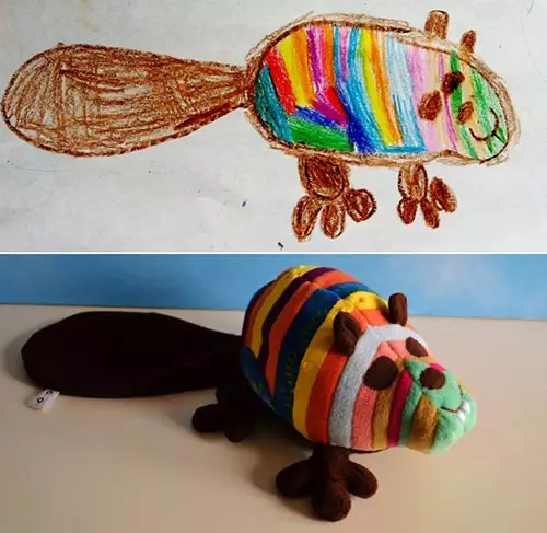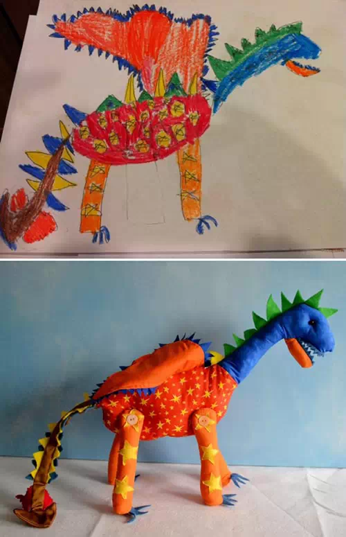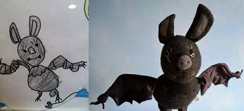 曹妈妈根据小朋友绘画制作的玩具体现出孩子们的丰富想象力。她在接受采访时说:“这是一项很有趣的工作,也很有意义,孩子们看见自己的绘画作品变成真实的东西很开心。”