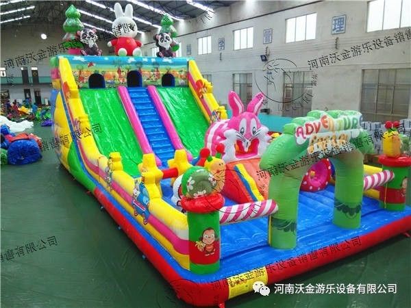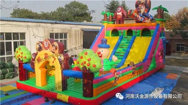 充气城堡是新一代的娱乐设施,根据儿童的特性设计,它内含滑梯、各式各样的动画卡通造型,具有鲜艳明朗的色彩,深深吸引着小孩子。还有就是动画卡通造型,好的造型能培养孩子的想象能力增加趣味性。河南沃金拥有本行业十年以上的资深专业人才20余名,给您打造优质的产品,增强您最强的竞争力。下面让我们一起了解下沃金的充气城堡吧!