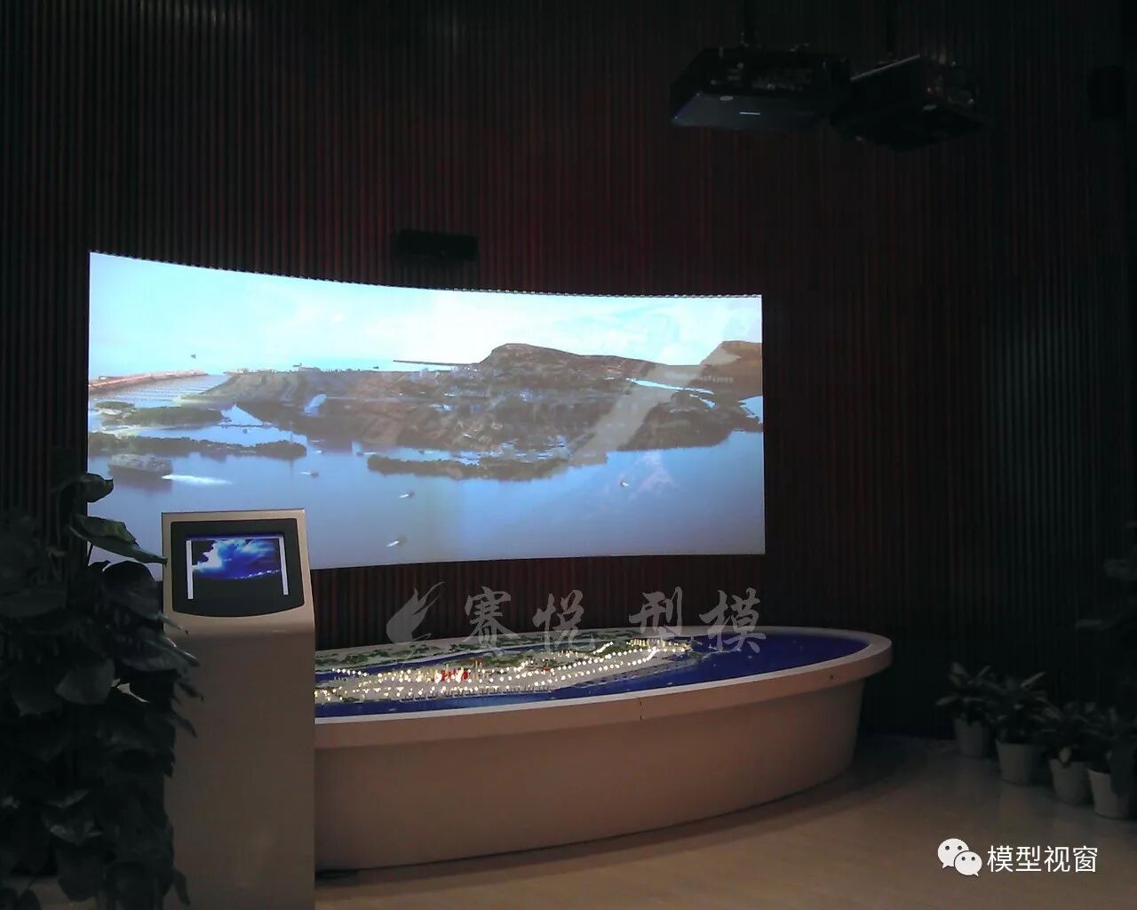 用投影机将计算机3D制作的诸如汽车、火车、轮船等运动物体投射到模型中,增加动感;将计算机3D制作的诸如火光、流水、云彩等动态影像投射到模型中,烘托气氛。