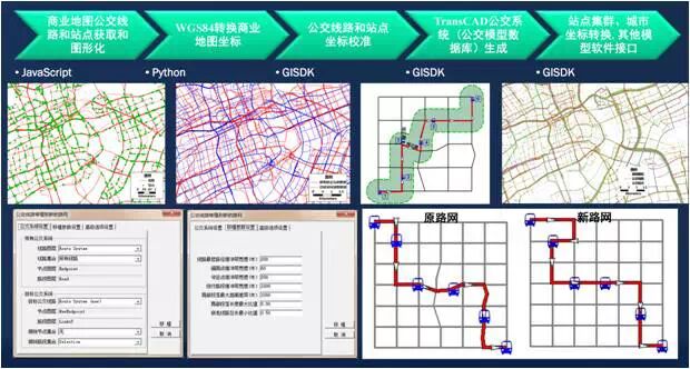 交通网络是交通模型的基本输入,主要包括具有拓扑关系的基础道路网、基础轨道交通网、各种交通模式的换乘连线、形心连线,公交线路(含轨道交通列车运行交路)和站点、站台等,数据库还包括这些网络的各类属性数据,如道路网络的道路等级、车道数,限速、是否收费、是否单行等属性,公交网络的线路发车频率、票价等属性。本次交通模型将GIS提取与交通模型网络进行了的结合,使得模型网络更加精细化,尤其是复杂立交、交通管理措施(单行、禁左、禁摩、禁货等)在交通网络中的表达。为了克服公交数据库的创建和维护工作量大、技术性强、维护周期长等困难,快速反应交通规划方案,在这次建模过程中,创新研发了公交模型数据库自动创建和移植技术,并开发了相应的工具,大大提高了公交数据库的维护效率,该技术在交通模型界也引起了较大的反响。