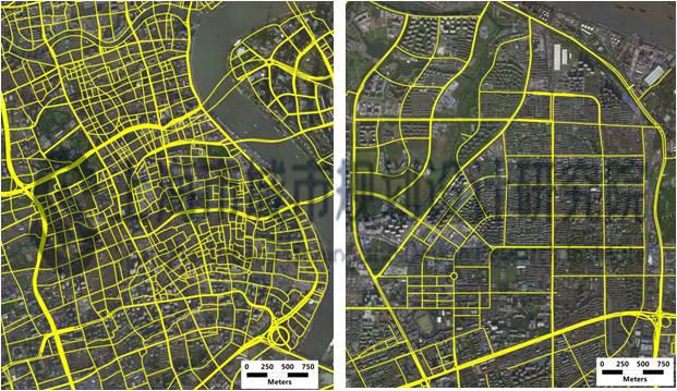 图:不同的街坊尺度下地区步行方式出行比重差异也较大