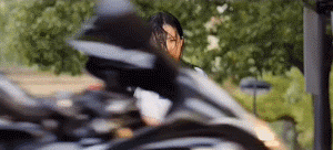 饰演的一袭红衣的灵雎从悬崖跳下瞬间