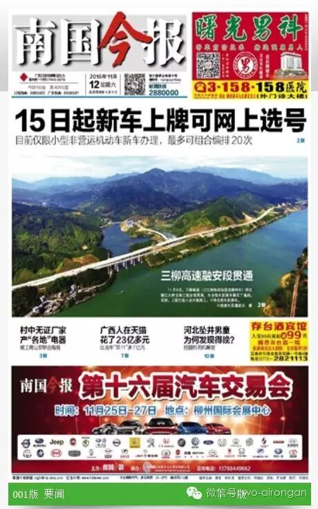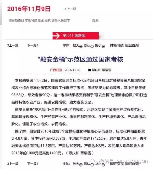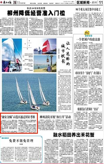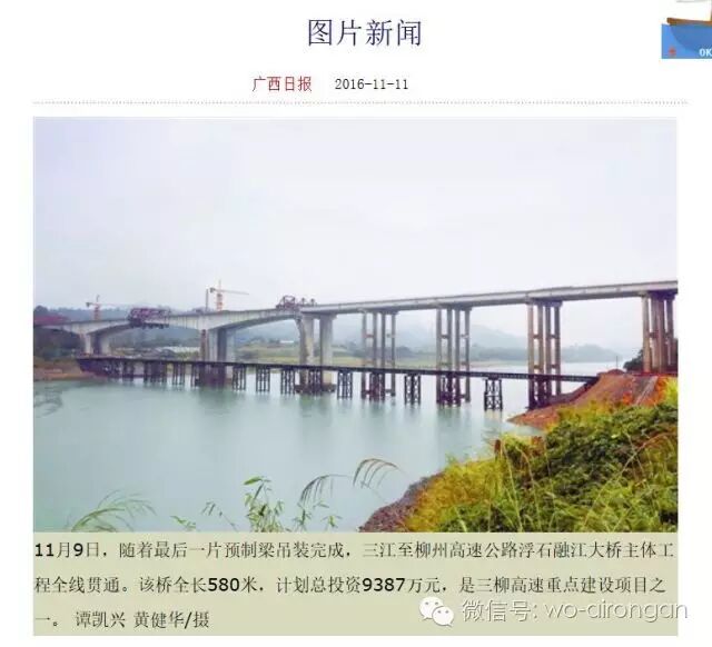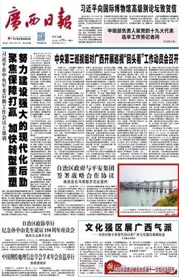 十、11月9日,广西日报以《“融安金橘”示范区通过国家考核》、《三柳高速浮石融江大桥主体工程全线贯通》报道融安新闻。
