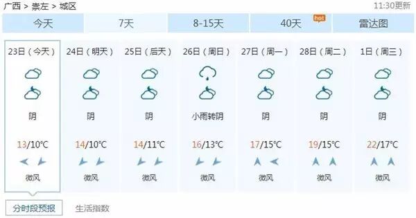 小编了解到,除了崇左,明天广西各地气温也会继续下降,桂南的气温会跟上桂北的低温步调,全区各地的日平均气温降幅也将达到最大值,范围在8~12℃。阴冷的天气模式在崇左将维持到2月底,直到3月初,气温将回升。