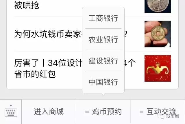 今天,鸡年普通流通纪念币预约正式进入了倒计时。为方便大家便捷预约,鑫藏阁特整理了四大银行最新的预约链接入口,链接已经放在公众号底部自定义栏中间的位置,大家可以点击“鸡币预约”选择银行直接进入页面进行预约了。这样,您就可以省时省力了。