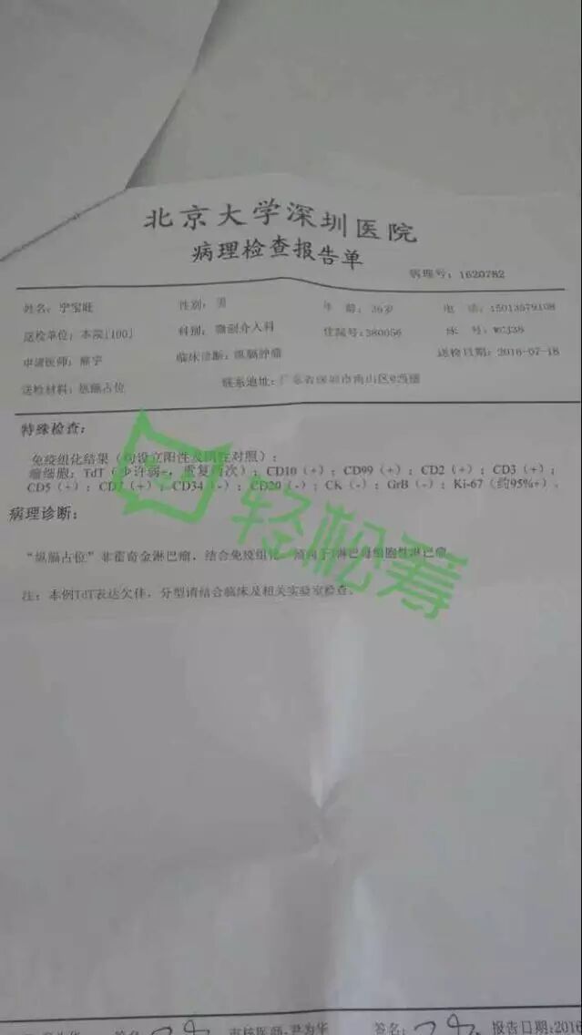 宁宝旺,今年37岁,家在广西省博白县,正当青年,帅气、壮实,正享人生最美好的时光,已经拥有了幸福的小家庭,因身体不适,于2016年7月14日检查出患有T型非霍奇金淋巴瘤/白血病!