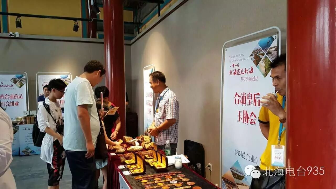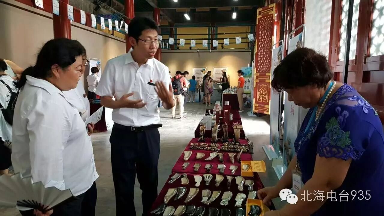在北海公园内同时还举办了大型主题活动,包括“印象北海”、“夏至北海”、“味道北海”、“结缘北海”等部分,汇集北海特色文艺演出、北海元素沙画演示、南拳表演、书画表演、海上丝绸之路申遗文物照片展、书画展、北海风光摄影展及北海旅游文化展,以及北海特色美食、海味、工艺品展示等内容。由50000颗珍珠镶嵌而成,重量达80斤的“珍珠龙袍”和工艺精湛的巨型贝雕、角雕惊艳亮相,炒沙虫、月饼和虾仔饼引人垂涎,中外游客可跨越历史、地域的维度,在同一时间同一地点体验到一富丽一古朴、宜动宜静的双城“北海”神韵。该展出活动将从7月8号持续到10号。