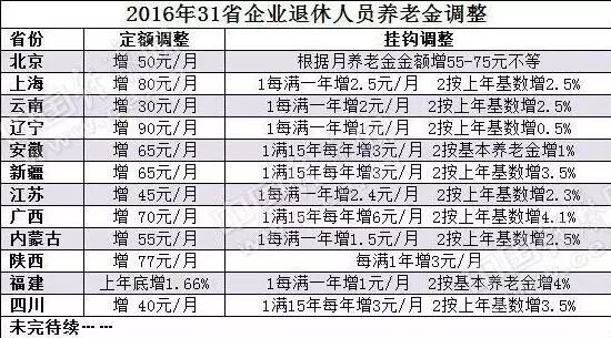 中国经济网北京9月12日讯 近日,随着江苏、安徽、广西退休人员基本养老金调整方案出台,中国经济网记者统计了31个省市养老金调整情况,据不完全统计,目前至少有12个省份公布上调养老金,同时又很多地区的养老金总体水平超过6.5%。