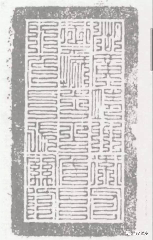 为明弘治年间正千户张升之印,此印规整严谨,无论每字笔画多寡,所占空间相等,每笔之间距离完全相等。它是九叠篆中章法最佳的作品之一。印长9.5、宽5.5、厚3.5厘米,印把高5.5厘米。