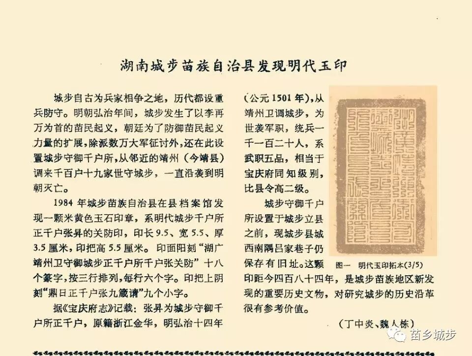 湖南城步苗族自治县发现明代千户所千户玉印“湖广靖州卫守御城步正千户所千户张关防”,
