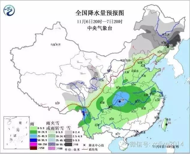 青藏高原东部、内蒙古东部、东北地区大部、华北北部等地有小到中雪或雨夹雪,其中内蒙古东北部、黑龙江东南部、吉林东北部等地部分地区有大雪,局地暴雪;西北地区东南部、华北中南部、黄淮、江淮、江汉、江南大部及西南地区东部、广西北部等地有小到中雨,其中陕西南部、四川盆地东北部、湖北西部及云南西北部等地有大雨,局地有暴雨。