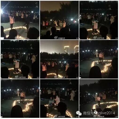 表白也接力,河北师范大学碎心湖一男生表白成功后,一妹子勇敢地抓过话筒说:“借我用一下蜡烛!”,向暗恋的学长告白成功!当晚竟见证了四对情侣的诞生 。