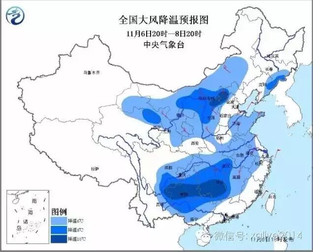 降温:6日至9日,较强冷空气自西向东影响我国中东部地区,大部地区气温将下降6~8℃,其中山西北部、河北西北部、贵州中西部、湖南中南部等地局地将下降10℃以上。中央气象台昨日18时继续发布大风降温预报。