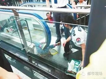 2015年一名小孩在重庆被卡进电扶梯夹角处