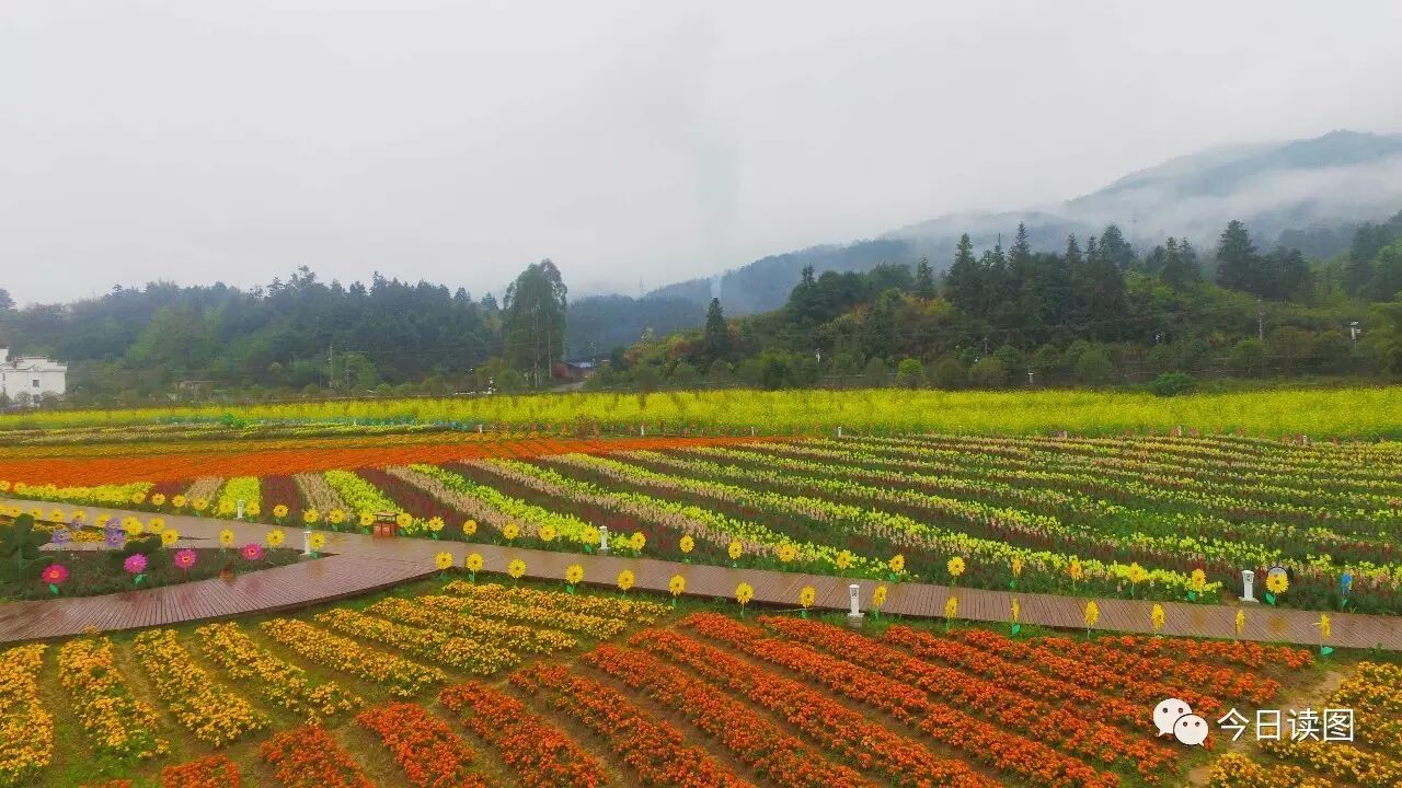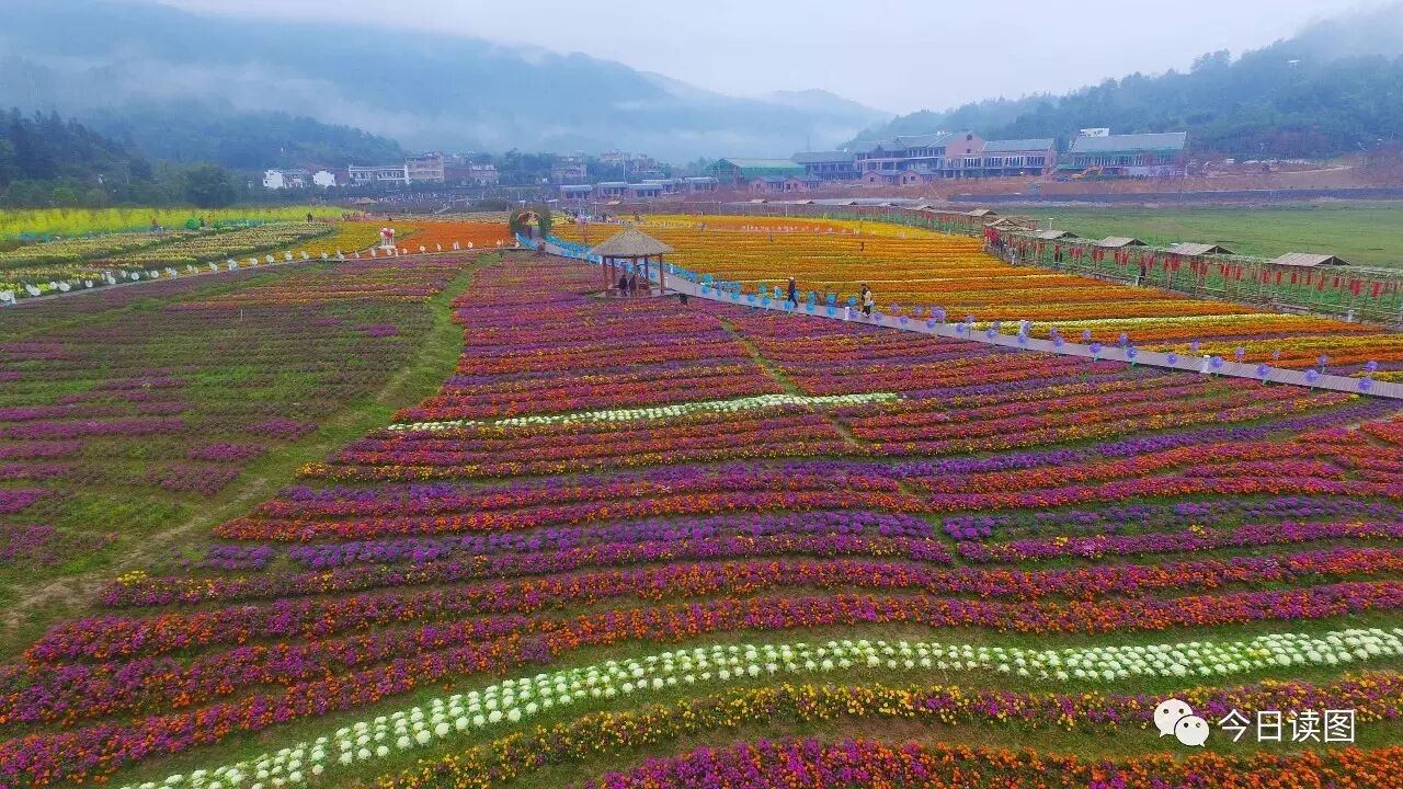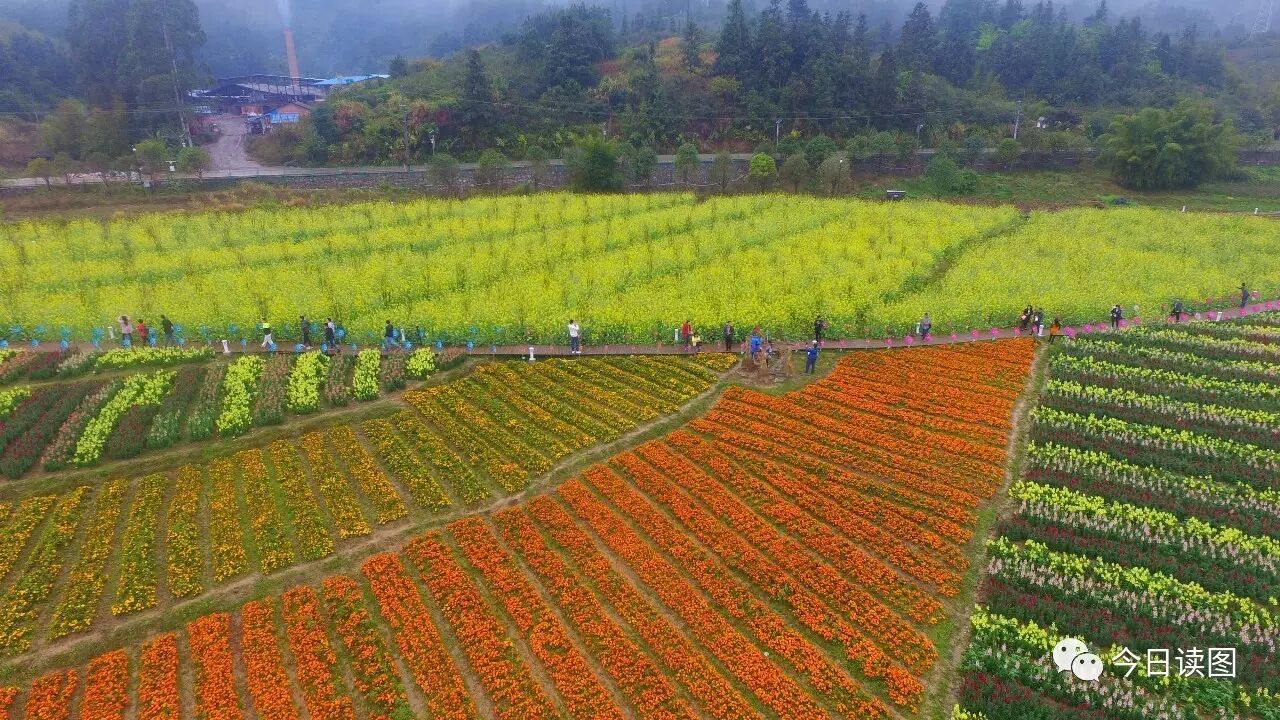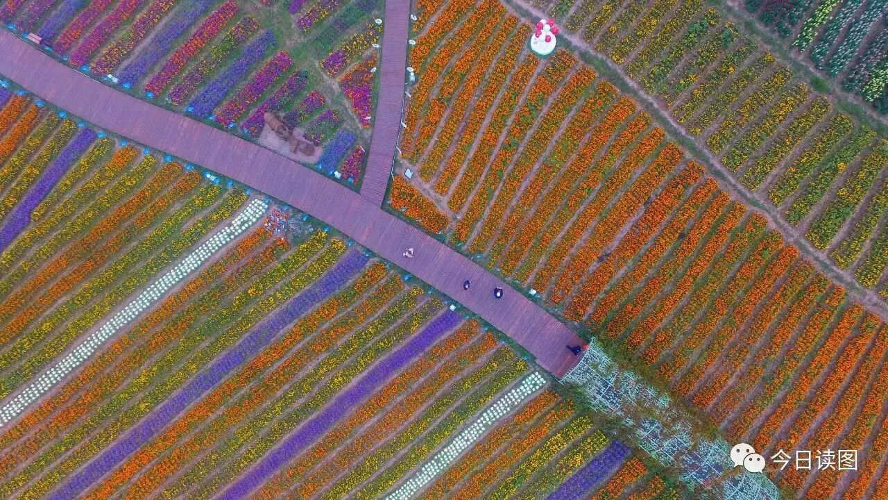 春暖花开时节,广西贺州市昭平县黄姚镇400亩花海各色鲜花竞相开放,从空中俯瞰,犹如大自然的调色板,色彩斑斓,吸引众多游人纷至沓来踏青赏花。(谭凯兴 摄 )