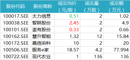 今日共有7家企业成交,其中 智耕股份,崟有股份上涨。