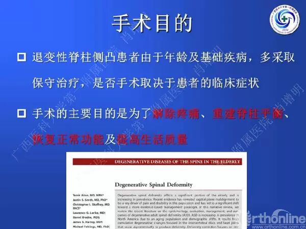 退变性脊柱侧凸多发于50岁以上的中老年群体,是现代常见的老年疾病。多年来,针对该病的临床研究一直没有停步,广西医科大学第一附属医院肖增明教授细致地介绍了该病的诊疗进展。