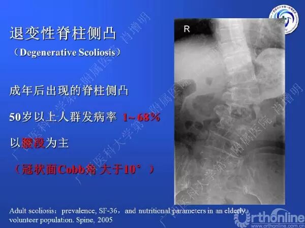 退变性脊柱侧凸是由于椎间盘退变后继发小关节退变,椎管和神经根管容积变化以及脊柱失稳,畸形等病理改变,以疼痛和神经压迫症状为主要表现的常见疾病。