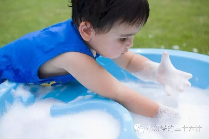 也可以试试看往水里挤点温和的洗洁精或者洗衣液,疯狂搅拌一下,就成泡泡桌了。碰一把吹得满天飞,抓一把随便扔,让热爱泡泡的小小孩们过足瘾!