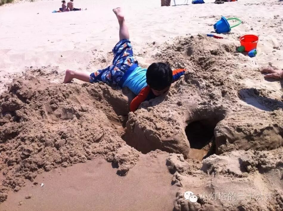 在这种大沙地儿,想让小朋友玩得痛快玩得彻底,除了各种玩沙玩具(桶,铲子,耙子,各种塑料工程车等),还有两点家长需要特别注意的。