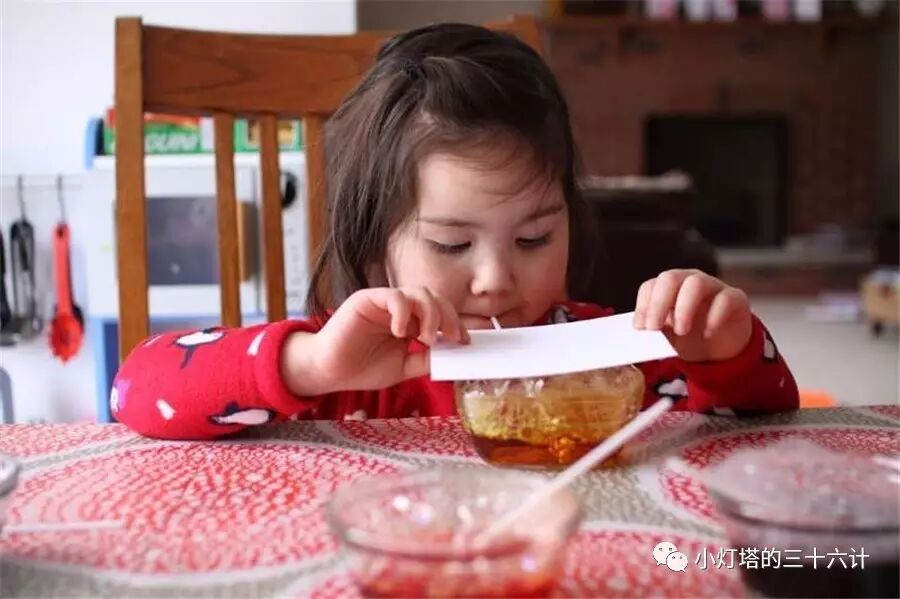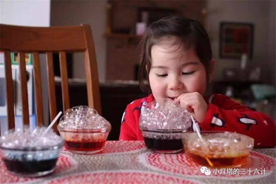更多的花样还包括:用颜料给剃须泡沫(shaving cream)上色,把颜料加到水里冻成彩色冰等等。请记得,孩子的世界五彩缤纷,为了所谓的“干净”就让他们在色彩面前缩手缩脚,是不是有些本末倒置?