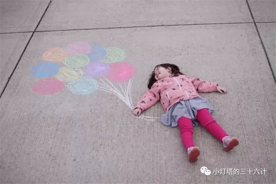 粉笔画还是拍创意照的好办法,千篇一律的背景纸多没意思,手绘粉笔画让小朋友轻松成为画中人。