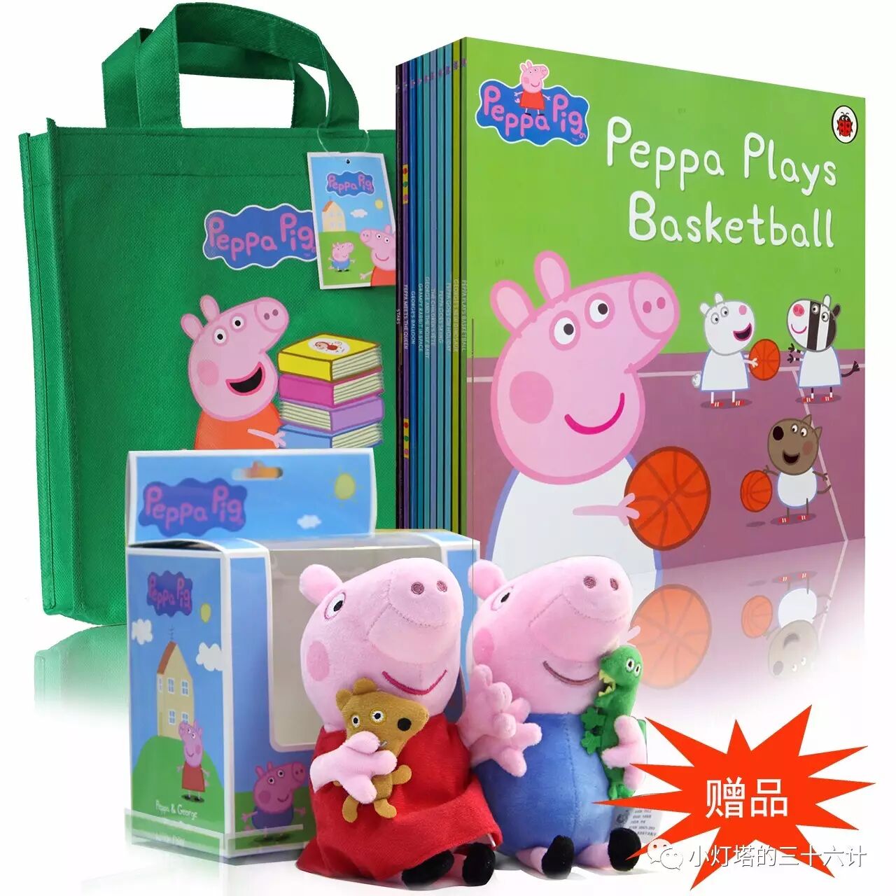 团品1:《粉红猪小妹Peppa Pig》10册套装+赠送原版玩偶一对+送环保袋一个