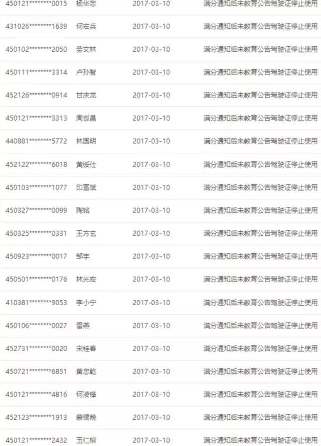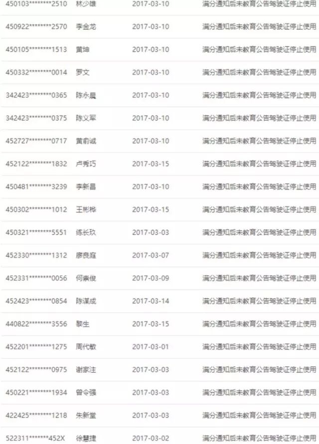 首页 | 美容百科 | 广西多名司机驾驶证被停用!清明假期将无法开车上路 广西多名司机驾驶证被停用!清明假期将无法开车上路 2023-04-19 23:50:29 广西壮族自治区公安厅交通管理局近日在交通安全综合服务管理平台公布了一批驾驶人名单,这些驾驶人的驾驶证已于今年3月被正式停用,清明小长假期间,驾驶证被停用的驾驶人将无法开车上路!清明节出去祭祀期间,注意你身边有没有这些人! (来源:广西公安厅交通管理局)