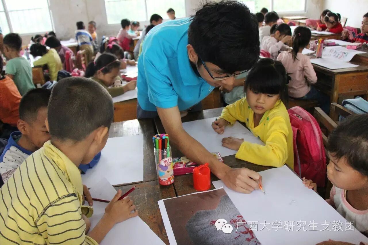 图为研支团成员周子富指导二年级的小朋友绘画创作