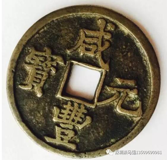 钱币为青铜质,直径约5.1厘米,厚约4厘米,制作规整,轮廓、字口深峻,钱文精美。钱币的正面是“咸丰元宝”四字楷书,背面左右为满文“宝源”,上下为汉字“当百”。梁伯说,咸丰钱币一般分三等,小平钱称“咸丰通宝”,当五至当五十称“咸丰重宝”,当百、当千称“咸丰元宝”。“咸丰”是清文宗的年号;满清入关后,分别在工部和户部设立宝源、宝泉两个造币局铸造钱币,以后各朝代先后又在各地设立宝河、宝东、宝伊、宝济、宝晋、宝陕、宝巩等二十多个局铸造钱币。