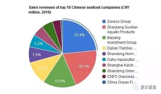 这样一来,如下图所示,这三巨头的业绩之和在国内十大水产企业2016年销售总额中占据了半壁江山,优势显而易见。