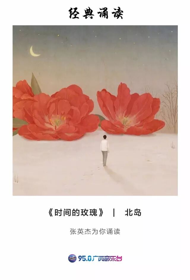 FM950《经典诵读》,我们一起来听北岛的诗《时间的玫瑰》为您诵读的是:广西电视台主持人张英杰。