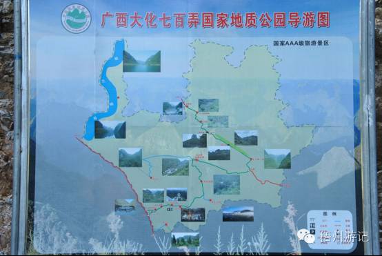 广西大化七百弄国家地质公园的导游图,下一个值得去的就是龙卷地了,我们决定骑到龙卷地折返。天下第一弄前面一个景点叫做“十里幽谷”,也就是这条山谷。