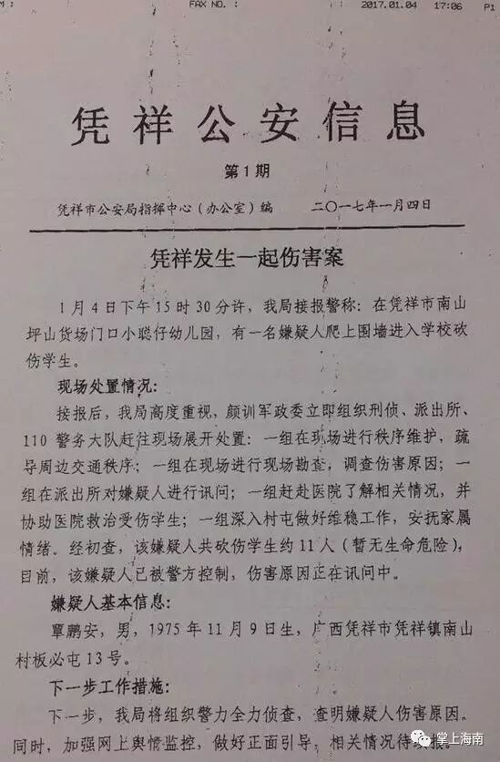 2017年1月4日,下午15点30分左右,广西凭祥市一男子翻越围墙进入当地一家名为小聪仔的幼儿园,砍伤11名幼儿。现场血肉模糊,哀嚎声一片...