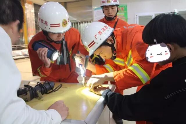 3月27日凌晨3时21分,广西钦州市消防支队接到市第一人民医院骨科报警求助称:一男生手指卡在钢圈内不能取出,向消防官兵请求紧急救援。支队接警后迅速调集官兵前往现场进行处置。