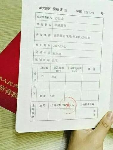 前两天,设立雄安新区的消息一公布,就有人在朋友圈晒出了自己的“房产证”,好多人还信以为真表示羡慕。记者没有“火眼金睛”,却能一眼看出这是“恶搞”。您看,这张房产证上,写的发证时间是2017年3月。但此时,全国已经进入“不动产权证”时代,“房产证”2016年底就全面停发了!如果真有房产领到的也该是“不动产证”,不可能是“房产证”。