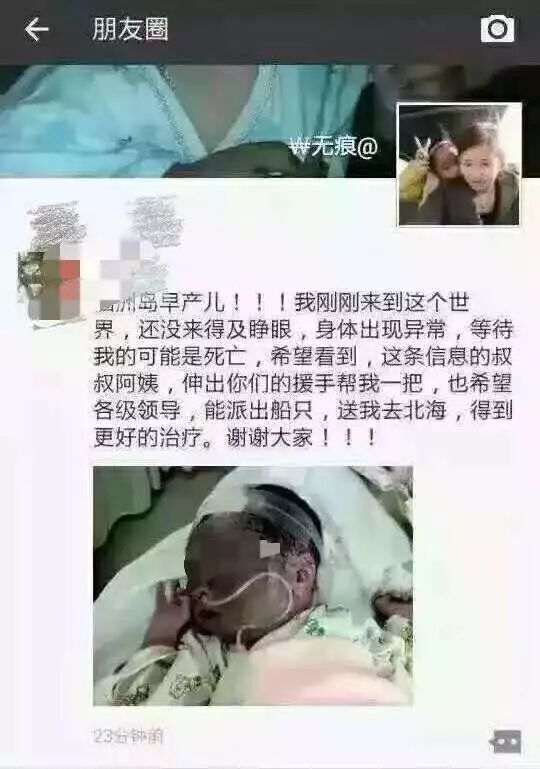 2016年7月27日晚上21:00,涠洲一名产妇在中心卫生院早产,因早产后的婴儿肺发育不成熟,出生后即出现呼吸困难,生命岌岌可危。涠洲中心卫生院立即安排驻院工作的市人民医院儿科医师及护士紧急抢救。但海岛医疗条件有限,急需将病人接送到北海市区医院救治。