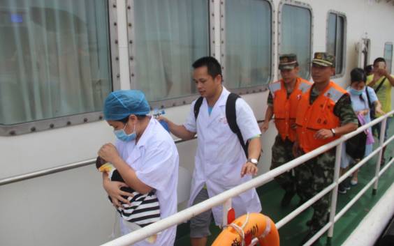 12点半左右到涠洲岛客运码头接到宝宝后立即起航赶赴北海,于14时10分许到达北海海警码头,等候在此的120救护车立即把人接走。