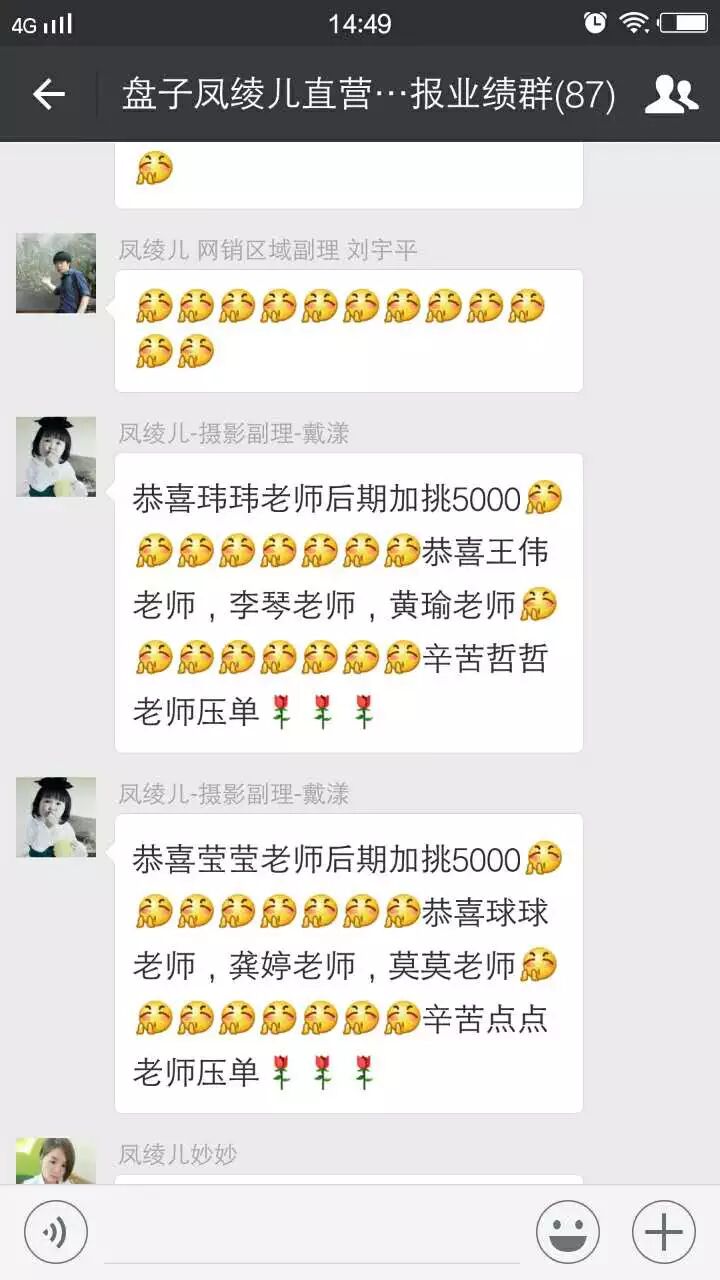 在凤绫儿业绩群内分享签单结果