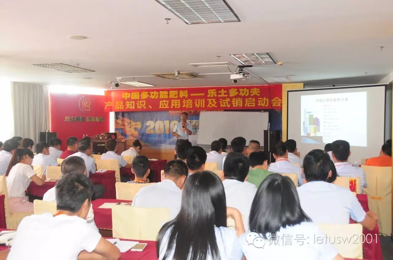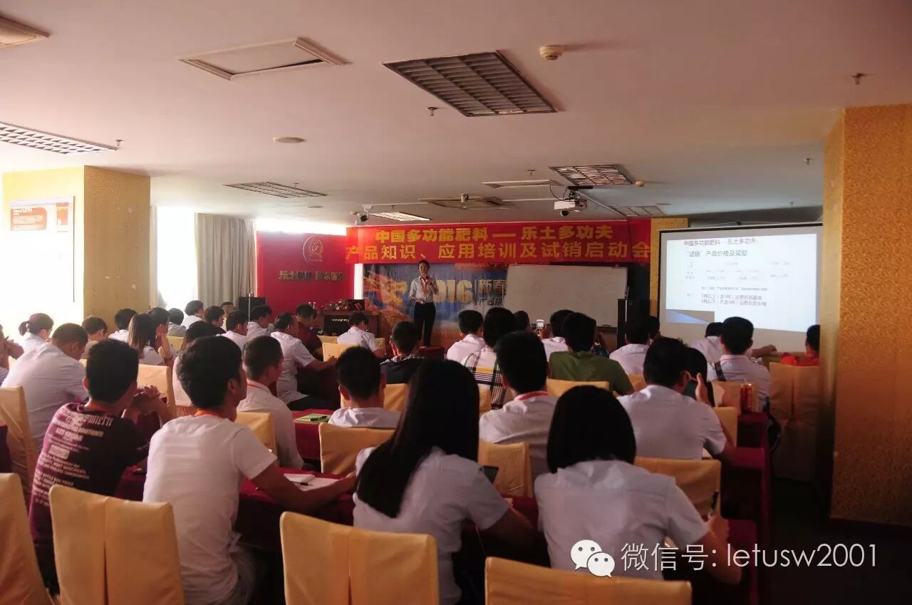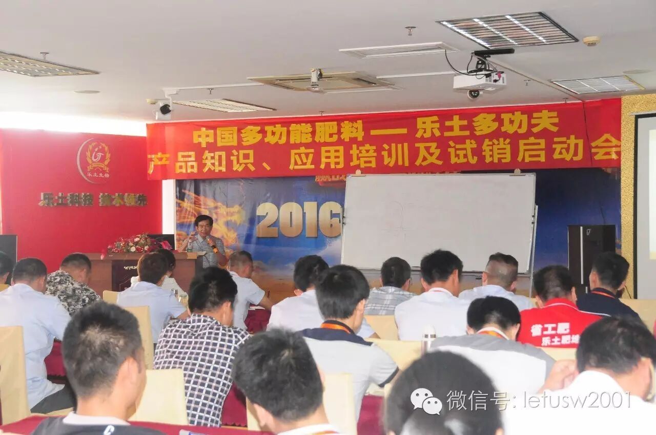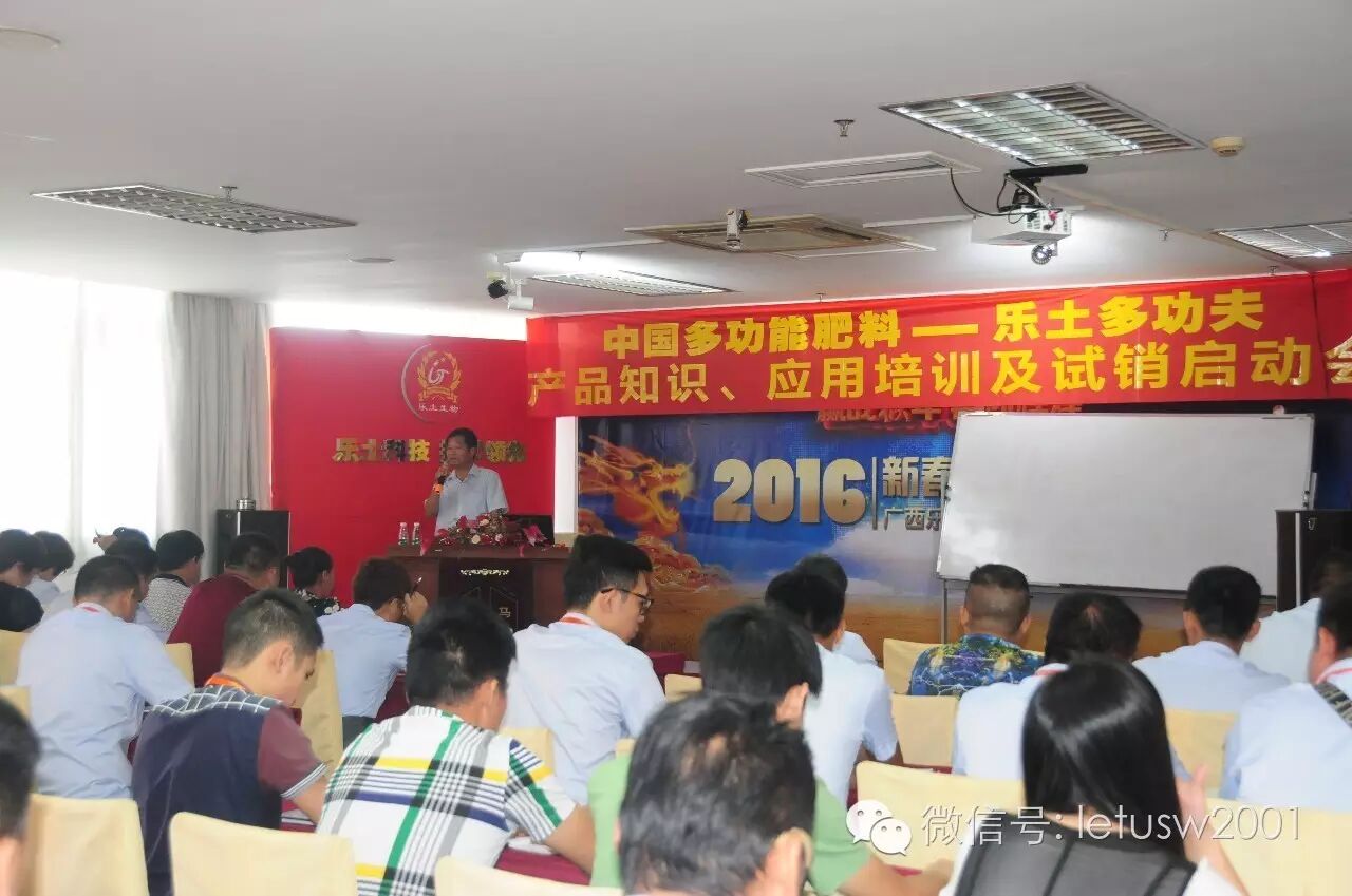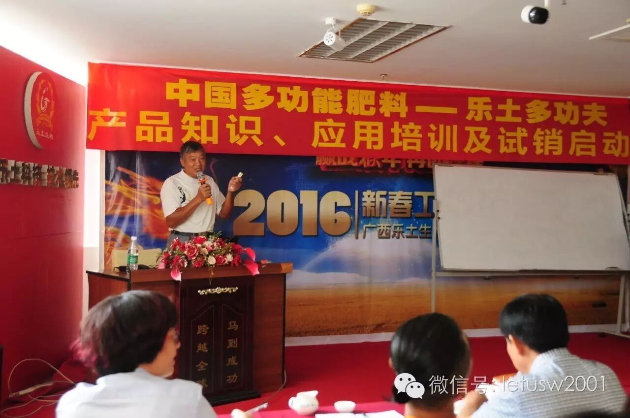2016年8月29日-30日,广西乐土公司在本部召开了“中国多功能肥料-乐土多功夫试销启动会”。本次会议有国营农垦集团东湖农场场长农军、乐土技术顾问黄明彪、乐土技术专家李万兴、乐土各部门领导及全体业务团队等参加。会议主要内容有:农军场长对土肥管理方面知识的讲解、吕昆明副总经理讲解乐土多功夫产品特点和用肥方法、黄明彪老师对柑橘丰产种植及病虫害防治技术的讲解、李万兴李工对柑橘用肥和柑橘病虫害知识的普及、业务团队代表分享销售经验以及乐土公司营销副总孙晓棠对多功夫的试销工作部署。