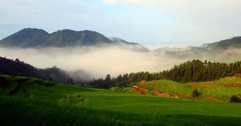 7—8月:正值欧家梯田的稼禾吐翠的时节,雨水充沛,云雾缭绕。更像画家笔下的山水国画,充满诗意。