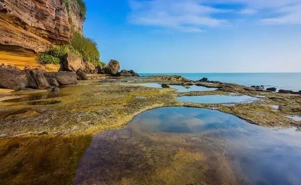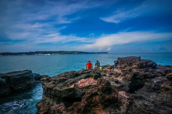 当然,如果你对潜水真的不感冒也没关系,来五彩滩看壮阔的海蚀崖,配上这里的特产——火山岩海上日出,独特的景色一定让你不虚此行。